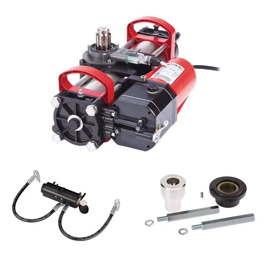 FAAC Swing Gate Opener Kits come in complete packages for different gate types. Single Kits handle gates up to 18 feet and 1,760 pounds and include control boards, hydraulic manual release, photocells, transmitters, and support boxes. Secondary Kits expand existing systems with conductor cables, junction boxes, operator arms, splined shaft collars, and support boxes. Specialty Kits provide options with locks, color-matched finishes, and compact 13 to 16 foot models rated for 700 to 1,760 pounds, available in 24 volt DC or 110 to 120 volt AC versions.